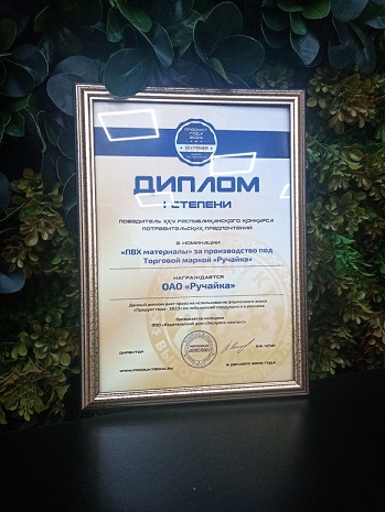 Звание победителя конкурса присуждено предприятию в номинации «ПВХ материалы» за представленный продукт: тентовые материалы под торговой маркой «Ручайка».